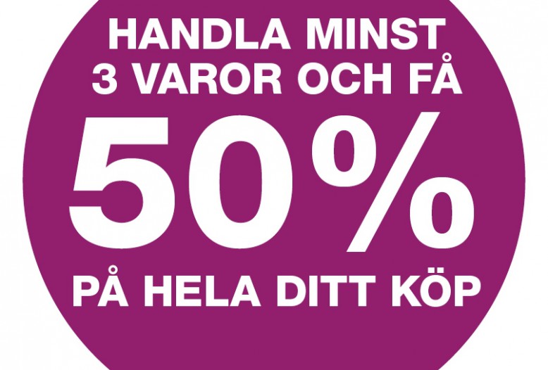 02 Apr 2015Köp minst 3 varor och få 50% på hela köpet!