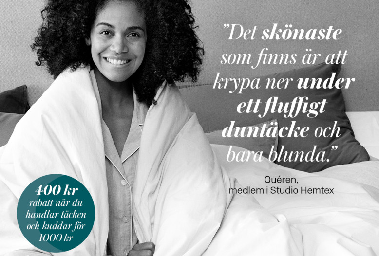 Just nu får du 400 kr rabatt när du handlar täcken och kuddar för 1000 kr.