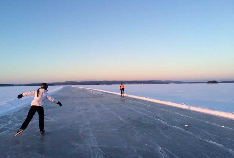 03-22 Mar 2015Skridskosäsongen pågår för fullt. Björn på Runnisplogarna har besiktat isen och den är stark och hård, blå och röd bana är öppen.