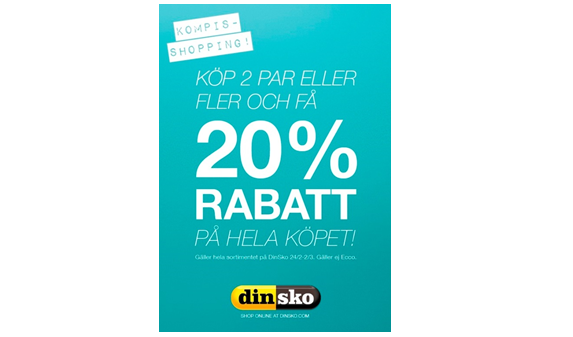 24 Feb - 02 Mar 2014Köp 2 par skor eller fler och få 20% rabatt på hela köpet