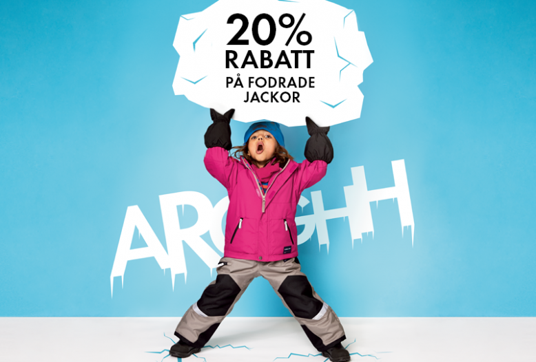 20-26 Oct 2014När kylan kryper in på är det läge att uppdatera barnens jackor. Den här veckan erbjuder vi 20% rabatt på ett urval fodrade jackor. Gäller t.o.m 26/10 på utvalda plagg. Kan ej kombineras med andra rabatter och erbjudanden. Passa på!
