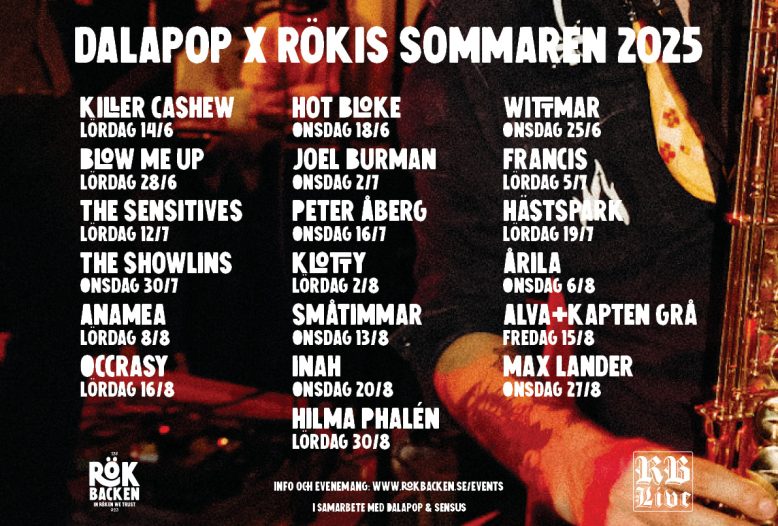 I sommar har vi och våra finfina vänner på Dalapop slagit våra skallar ihop och raddat upp den här otroligt sjuka line-upen på Rökscenen. En finfin blandning av vår favoritmusik som vi nu kommer tvinga vidare på er. Grattis och varsågoda!