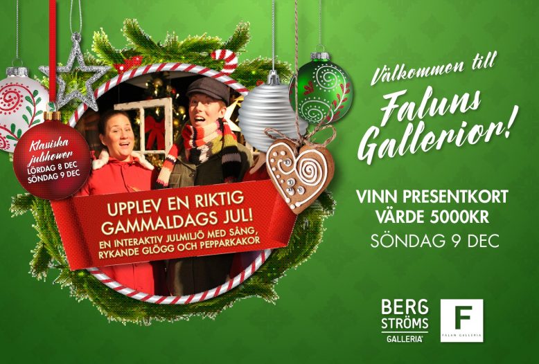 I både Bergströms Galleria och Falan Galleria kommer du under söndagen kunna tävla om presentkort till ett värde av 5000 kr. Det enda du behöver göra är att gissa antalet polkagrisar i en cylinder eller julkulor i ett paket.