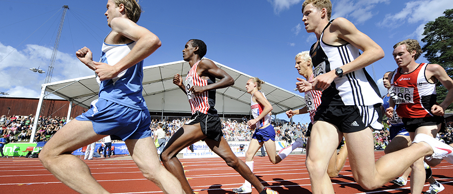 FALUN 20100822 Friidrotts SM 2010. Söndagens finalpass. M 5000 meter finalheat, 129 Mustafa Mohamed vann, 129 OskarKäck tvåa.