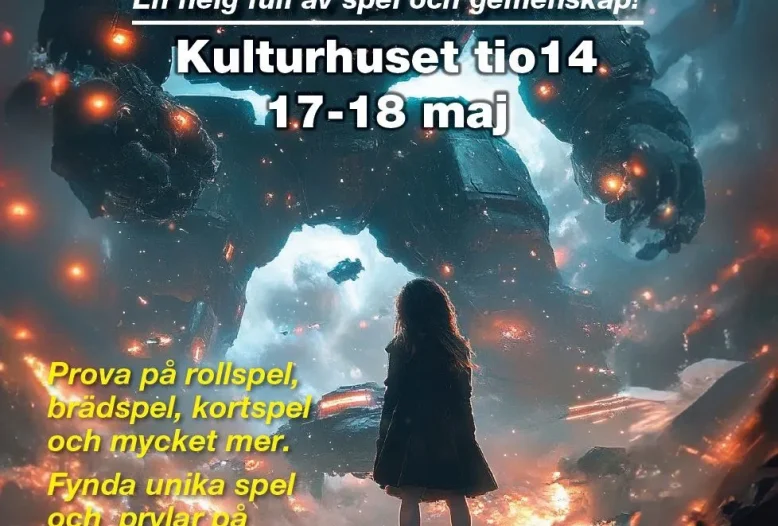 17-18 May 2025 Kulturhuset tio14Nördhelg för spelkulturintresserade. En helg för dig eller familjen som är spelkulturintresserad eller nyfiken på vad spelkultur är. Se, delta och få inspiration till roliga hobbys.
