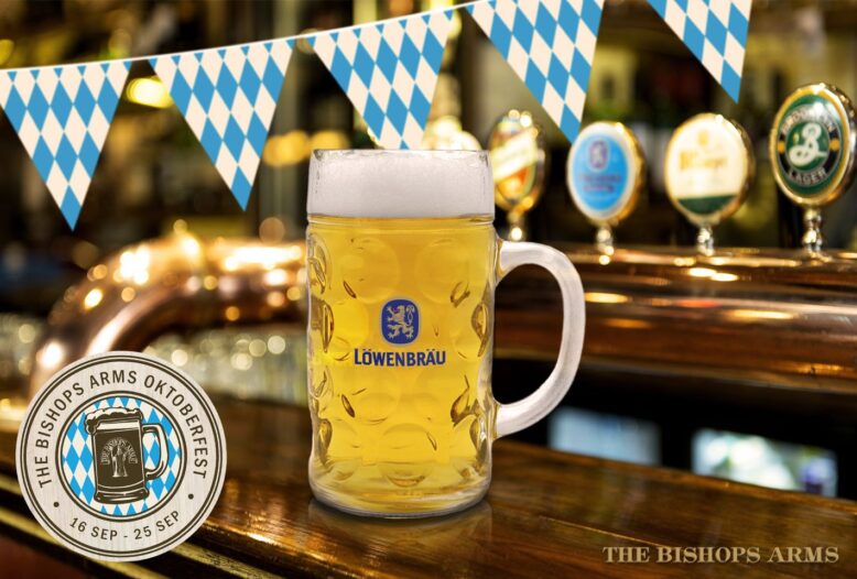 Oktoberfest på The Bishops Arms sker i samarbete med Löwenbräu Oktoberfestbier, ett typiskt ljust bottenfermenterat München-öl av högsta klass. Löwenbräu har serverats vid varje Oktoberfest i München sedan 1810 och är ett av endast sex bryggerier som är tillåtna att servera öl under festivalen.