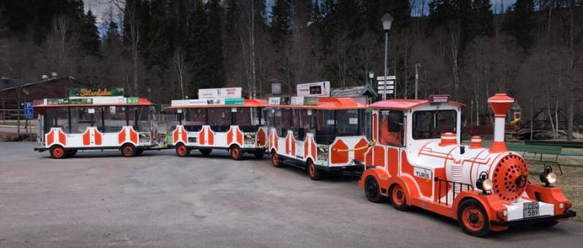 12-16 Åk en runda genom stan med stadståget TURiS, hållplatser för på- och avstigning på Holmtorget, Stora Torget, utanför Electrolux Home på Åsgatan samt utanför Lek & Baby på Slaggatan